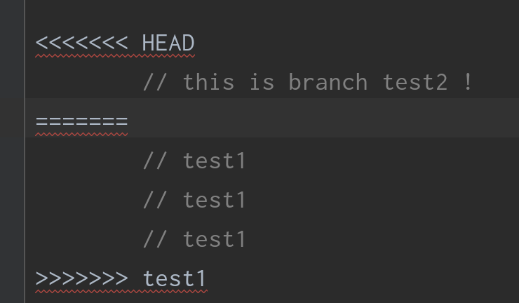 ex) test2 branch 10행에 a를 작성, test1 branch 10행에 b를 작성