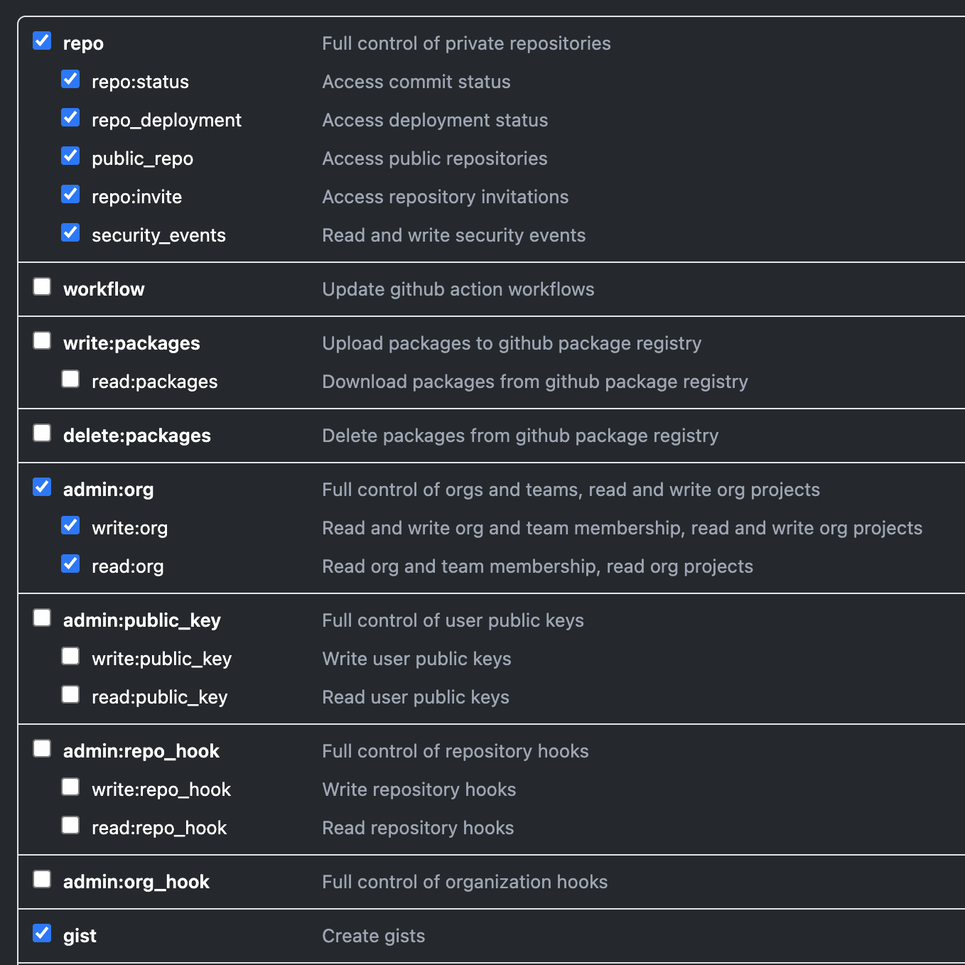 깃허브 프로필 클릭 -> Settings -> Developer Settings -> Personal access token -> generte new tokwn 선택 후 아래 사진처럼 하고 토큰을 입력하면 연동 된다.