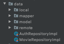 data계층에는 Local에 접근할 수 있는 local과, 네트워크 사용을 위한 Remote와 Repository의 구현체인 RepositoryImpl이 있다.
