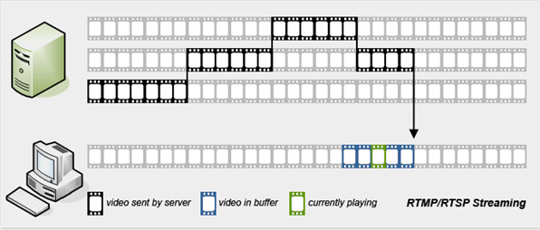 이 방식은 데이터를 다운받지 않는다. 사용자가 현재 시청하고 있는 비디오 프레임만 전송하며, 이미 시청한 데이터는 버린다.