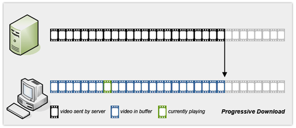 전체 파일을 다운받기 전에 재생하므로 매우 스트리밍과 동일하게 보인다.