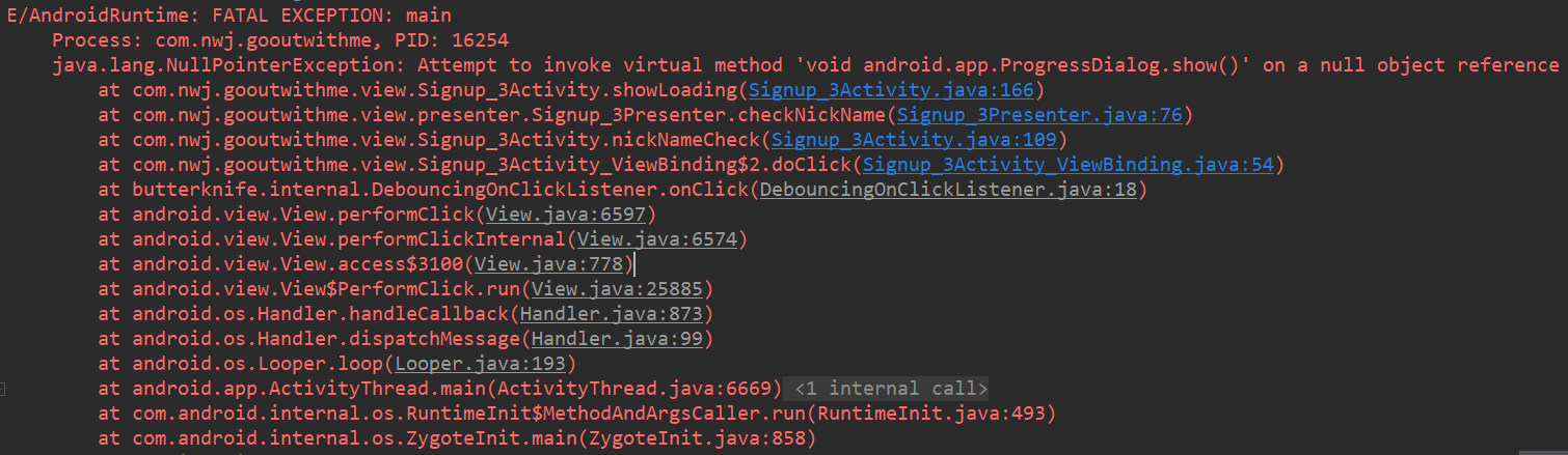 null object reference 무슨 객체가 참조를 못한다는건데....ProgressDialog를 못찾는다는건데...